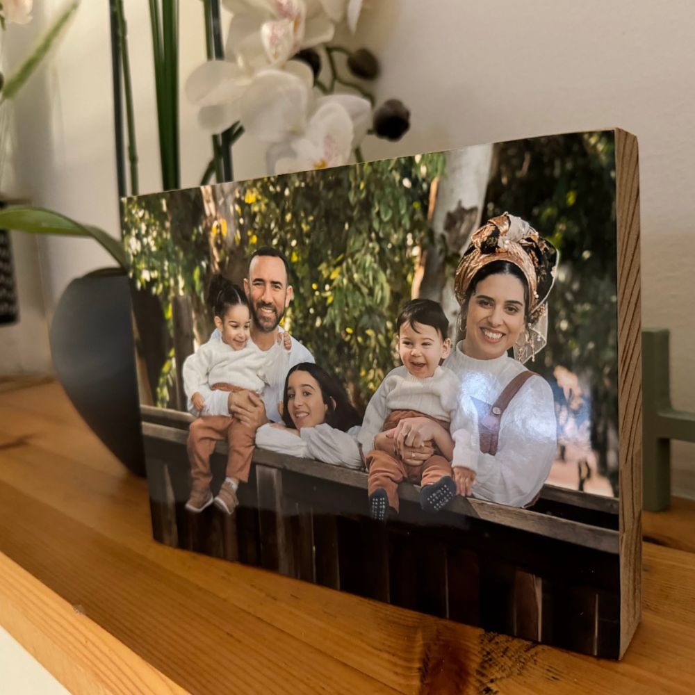 בלוק עץ איכותי עם הדבקה של תמונה מודפסת על נייר פוטו יוקרתי. השילוב מעניק צבעים חדים, עומק וברק, תוך נאמנות מלאה לגווני המקור. מוצר אלגנטי שמכניס חמימות ואווירה אישית לכל חלל – מתאים כמתנה או כפריט עיצובי לבית ולמשרד.